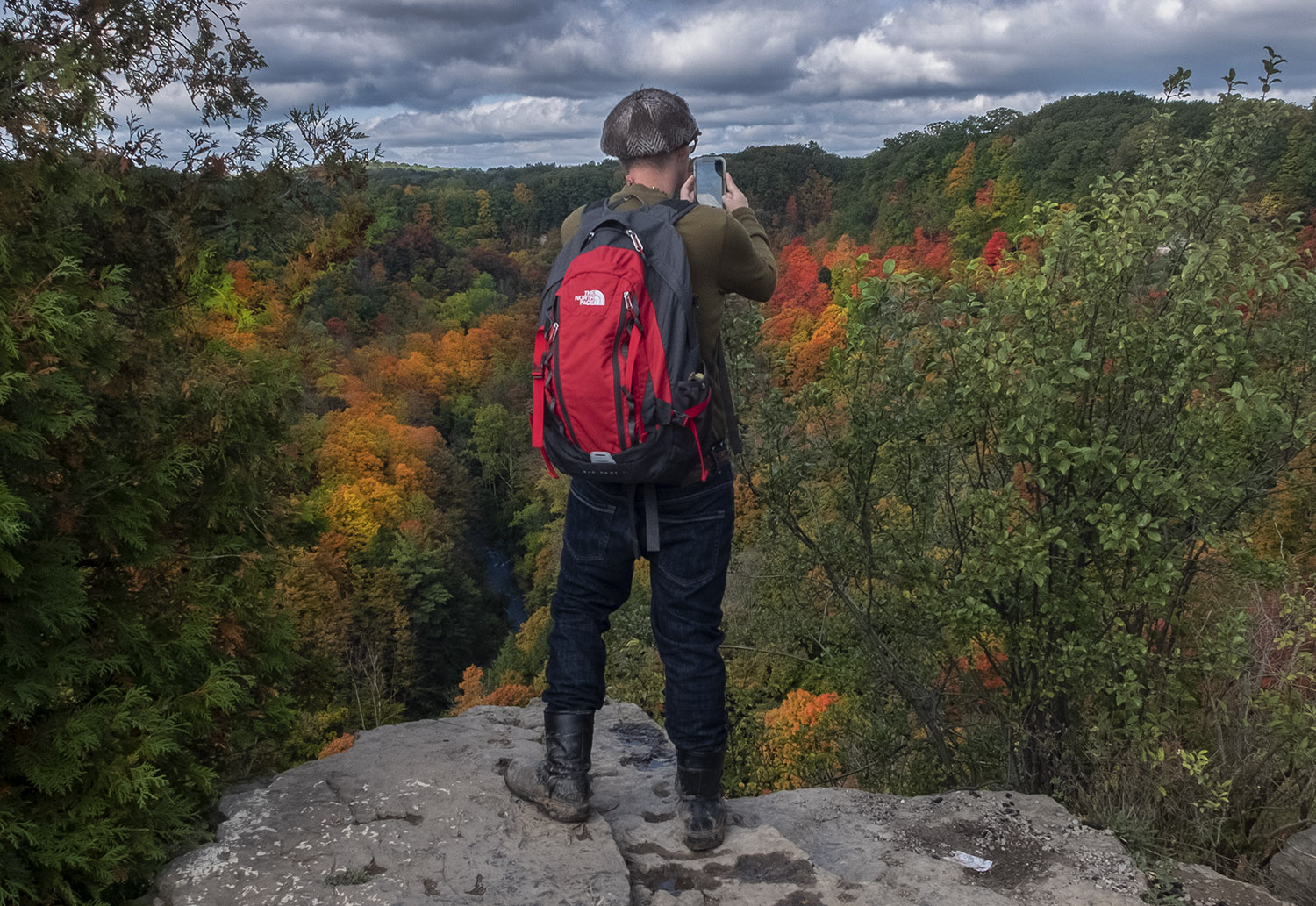 WINTER HAS COME EARLY THIS YEAR so our fall – brief as it was – had to be savoured quickly and greedily. That meant a trip to Dundas, Ontario and the Spencer Gorge on an October weekend, just as the leaves were turning all over this part of the province. Our objectives were two of the most dramatic waterfalls next to Niagara,and the most dangerous selfie spot in the area.