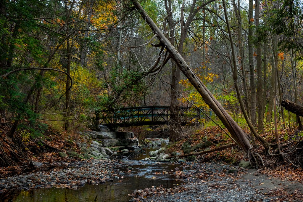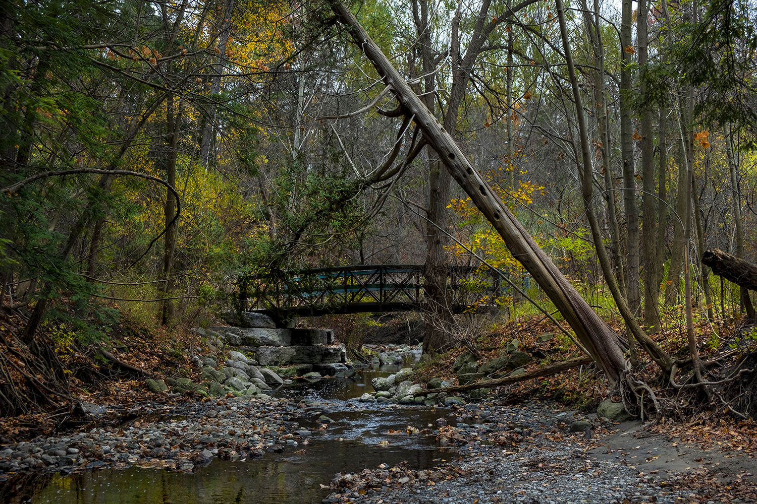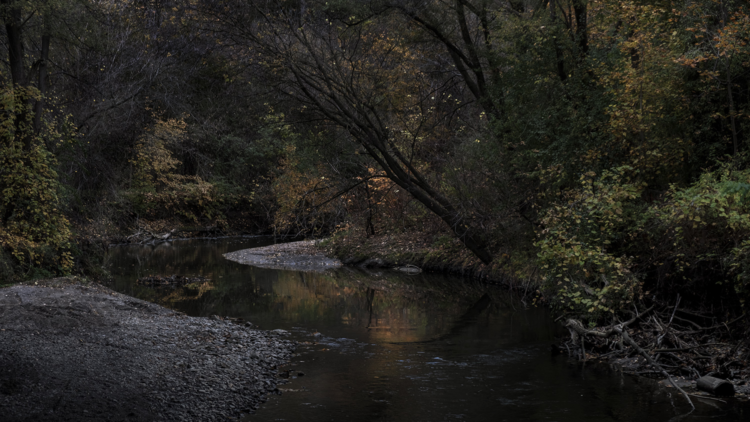In some parts of the world, Toronto’s rivers would barely be considered worthy of the name, and its creeks could hardly be described as much more than streams. That’s fair enough on a day like today, when Wilket Creek is low and calm, and the only dramatic thing to be seen is the heavy, darkening sky at the end of a shortening day. But if you know the story of our constant battle to manage and control these waterways, the drama reveals itself to be an unspoken but constantly looming threat.