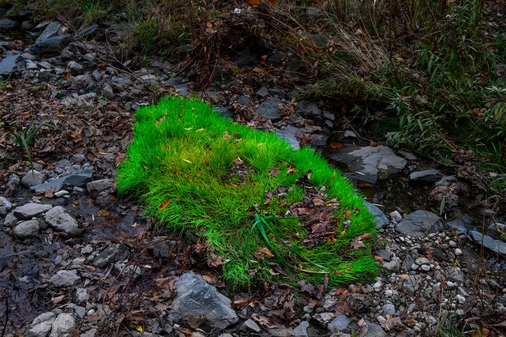 One hiking website describes the ecology of the creek and its parkland as distinctly watery: “Moist marshes and groundwater seeps that flow towards the creek provide the dampness needed by the ferns, cattail marshes and wet scrub communities along the floodplain.” A lush little island of vivid green river grass echoes this description, and you’re never far away from the sound of gently running water.