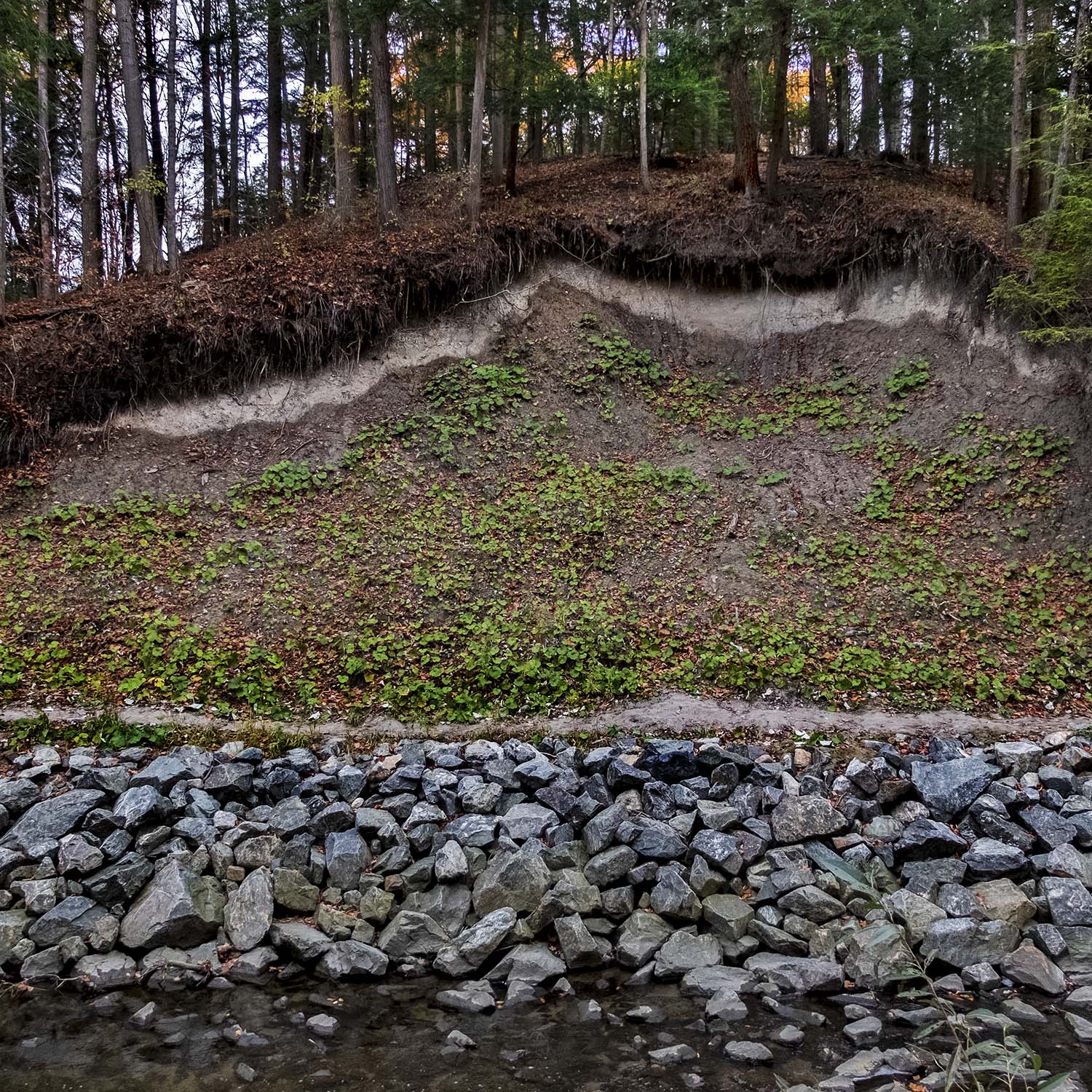 The creek has had several major floods, which led to a comprehensive rehabilitation project that closed parts of the trail over the last few years. It’s a difficult job balancing nature and engineering, so gently curving, naturalized stretches of Wilket Creek will suddenly give way to views where it’s contained between gleaming banks of white stones, the shallow but dark water flowing over manmade rapids of riffle, next to gabion baskets and armourstone walls.