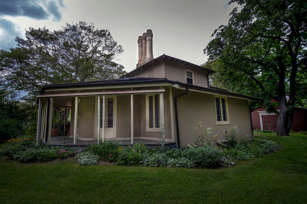 Colborne Lodge still stands and is usually open to the public as a museum and historical house – at least when pandemic lockdowns aren’t in place. It still contains most of the Howards’ furniture and many of John Howard’s watercolour paintings of the city and life in the park in the 19th century. The park also contains the Howards: their tomb is just a short walk across the road from Colborne Lodge – a stone cairn topped with a Masonic cross on the edge of a ridge by one of the park’s many ravines, protected by an iron fence that once surrounded St. Paul’s Cathedral in London.