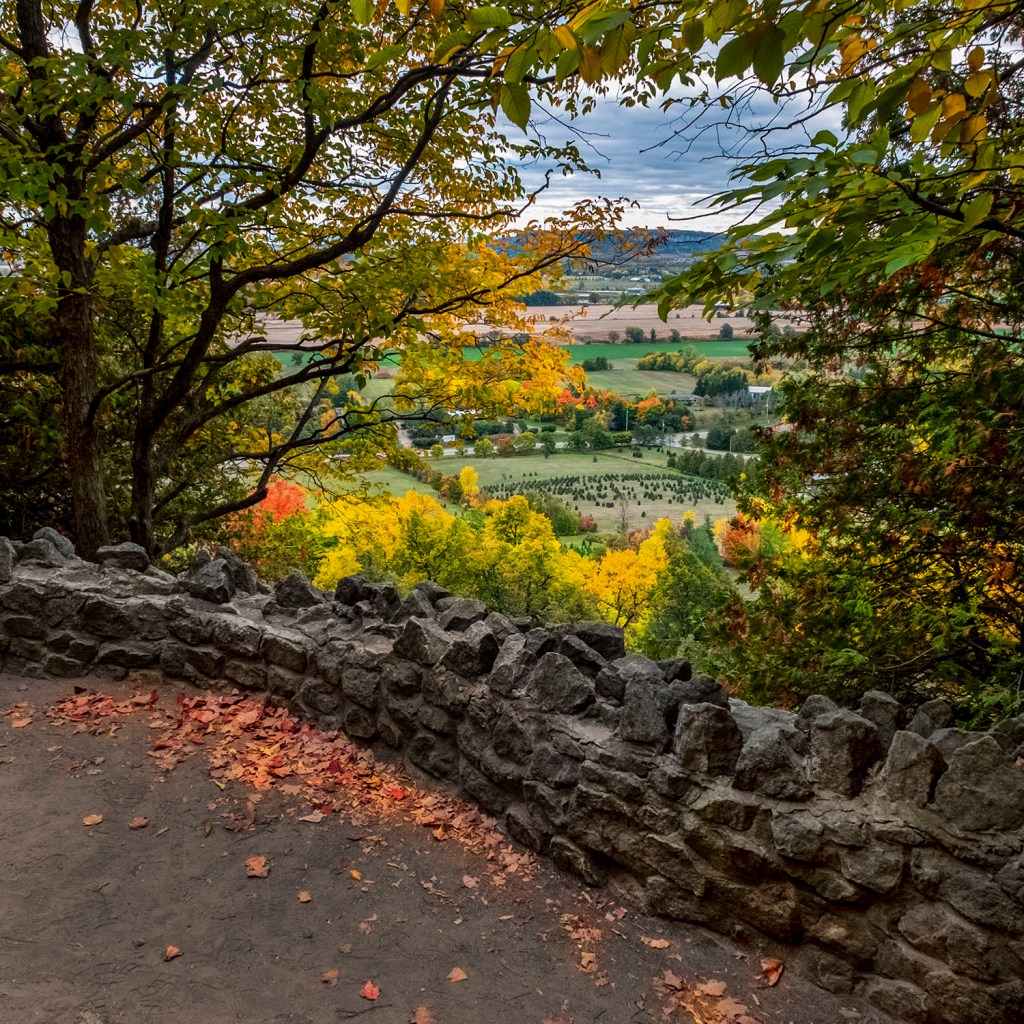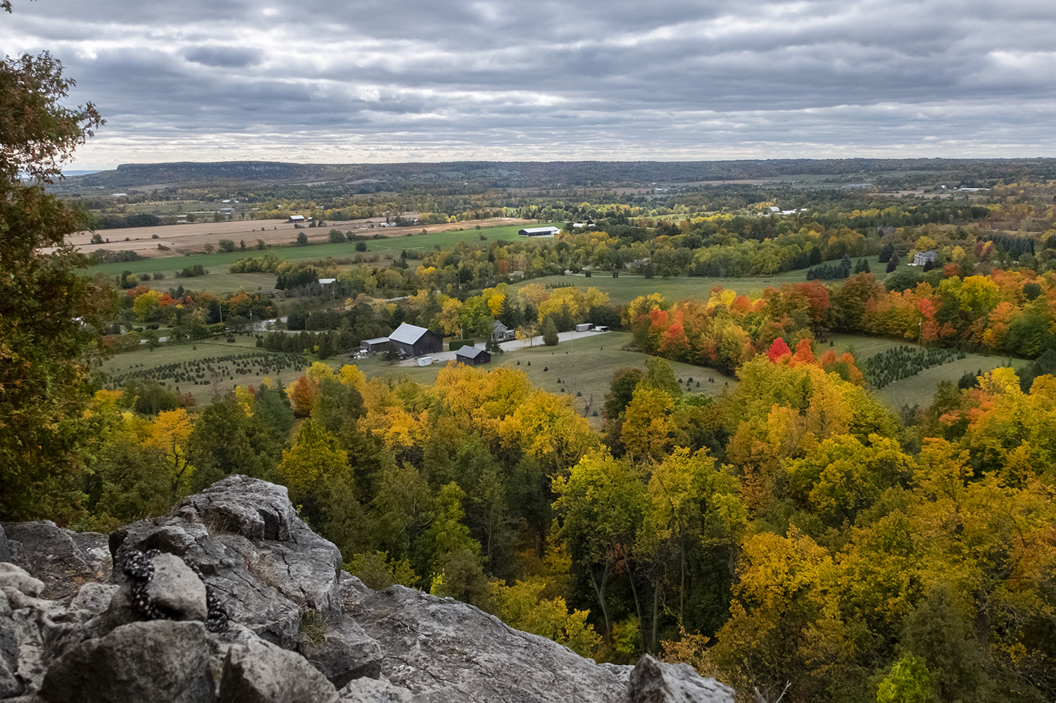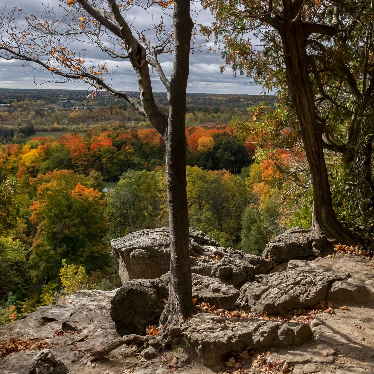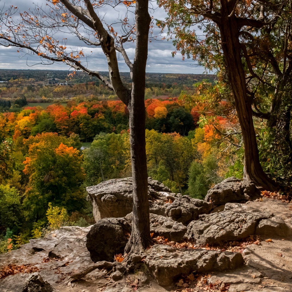 THE BEST WAY TO ENJOY THE FALL COLOURS IS TO GET SOME ALTITUDE. Easy enough if you live in the mountains, or own a plane, but for those of us living in the alluvial plain that is Southern Ontario, that means finding the high points. For most of this part of the province, that’s the Niagara Escarpment, and places like Rattlesnake Point Conservation Area, just outside Milton and west of Oakville.