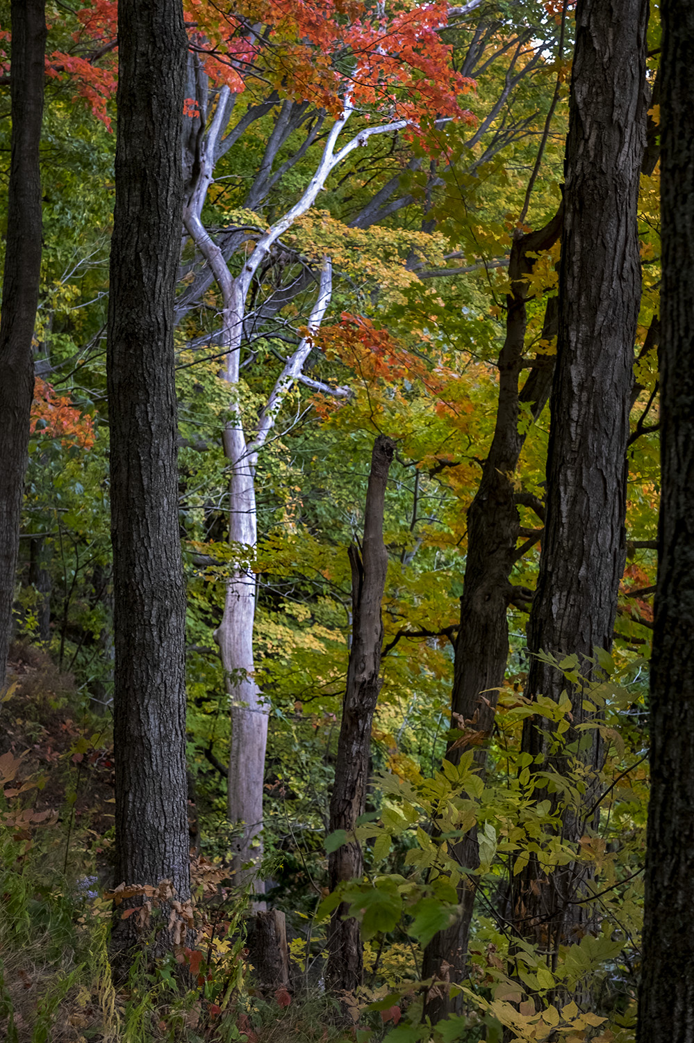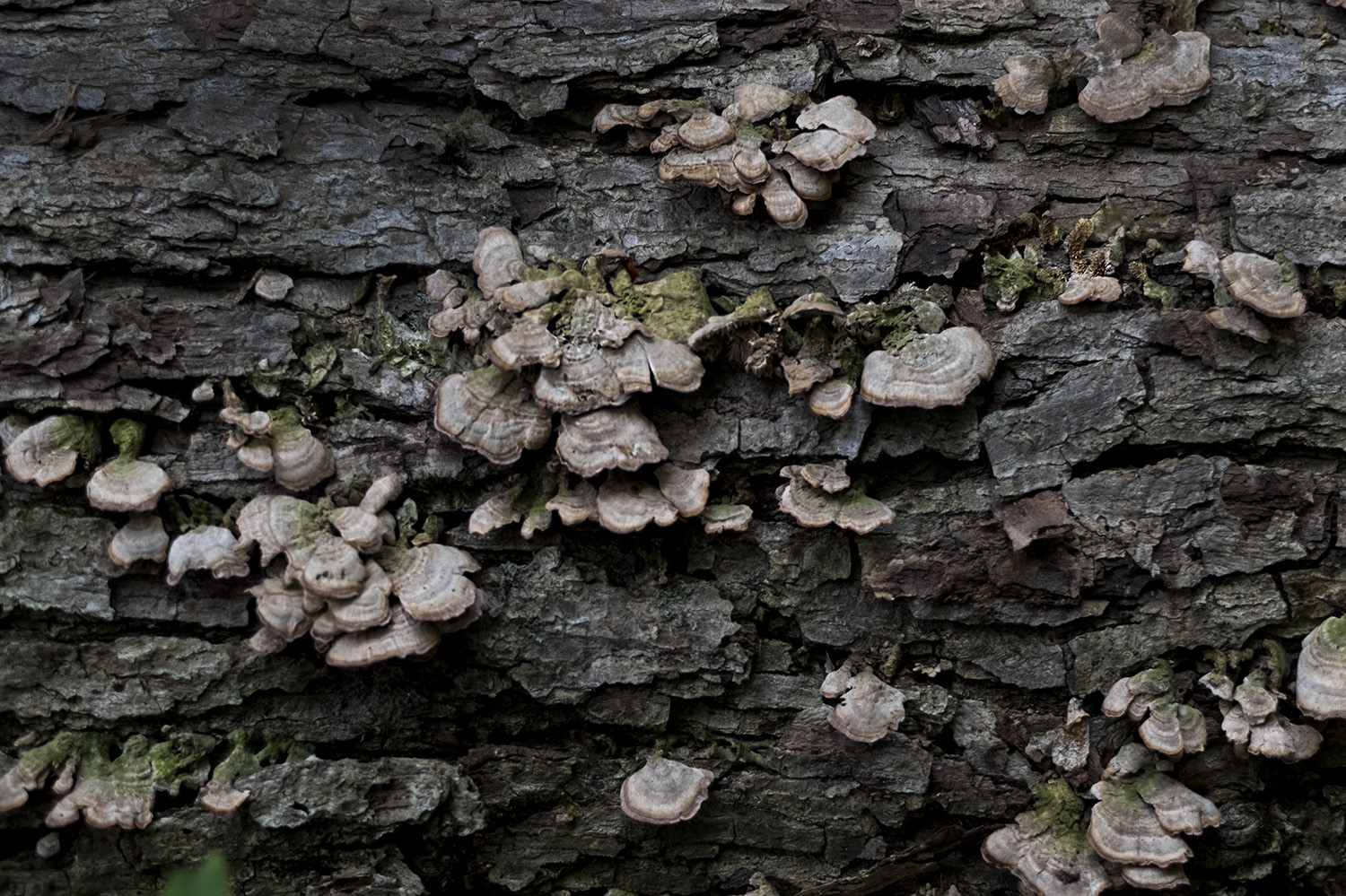 The only other colours this late in the fall came from the sumac buds and asters, in white and purple. Getting close to the ground, however reveals lichen and fungus for anyone looking for textures or subjects for macro photos. The air is cool and clean in this rural stretch between cities like Guelph and Kitchener and the cities sprawling along Lake Ontario.