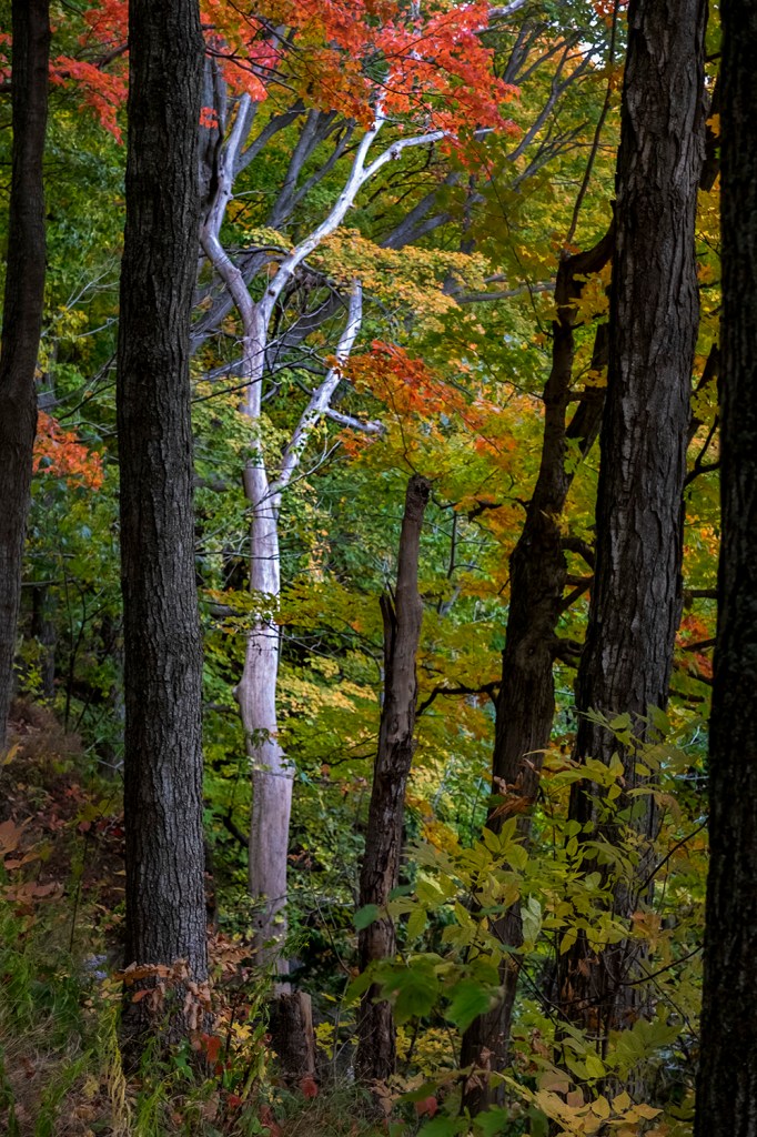 Our way there, like every trip to enjoy the fall colours, in places like Elora or Algonquin Park or Tobermory, was Parkbus, whose schedule is finally getting back to normal again after two years of lockdowns. We took the bus to Rattlesnake Point on Canadian Thanksgiving weekend, on a day that turned out to be as perfect as you could want, with the sun politely coming out from behind the clouds only often enough to provide variety in lighting for our photographs.