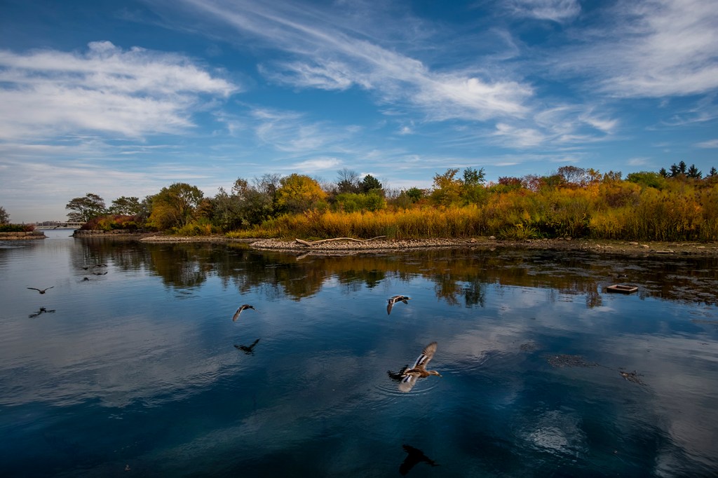 The parks were built out into the lake on either side of the mouth of Mimico Creek, sculpted to contain ponds, bays and inlets to create habitats for fish and waterfowl, like the warm water basin in the eastern park. Like Tommy Thompson Park in the east end, it’s become a haven for birders, with plenty of spots to see and photograph wildlife, both native and migratory, who’ve become attracted to the parkland since the first sections were opened in 1984.