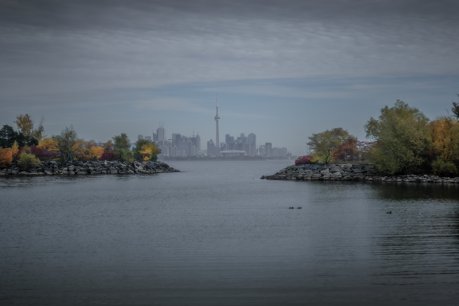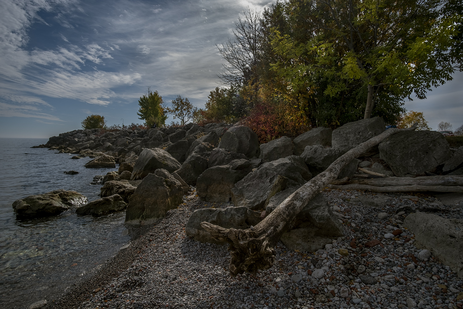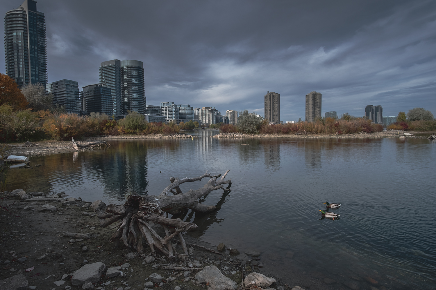 With the outer parts of the eastern park closed, the western half of Humber Bay Park was the best place to enjoy the dramatic views looking east back to Toronto’s skyline. The rocky shores, with their still-maturing landscapes, provide plenty of spots for dramatic landscape photographs in all seasons and weather. A decade ago this parkland was still raw and largely tree-less, so the evolution of these views is constantly changing.