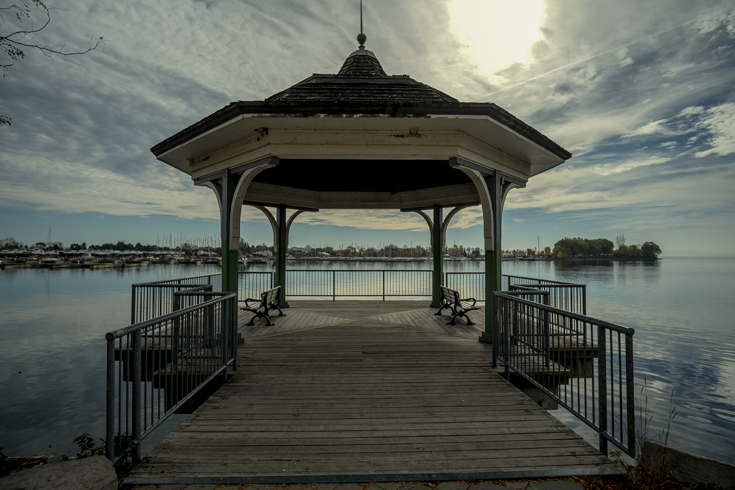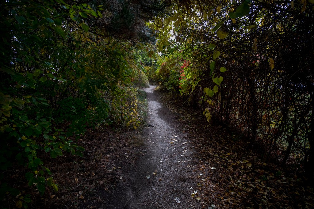 Trails and paths in the parks are mostly paved, but there are a few dirt paths that branch off through the trees, some of them becoming impressively overgrown as the parks naturalize. You have to remember that there was nothing here twenty or thirty years ago, and construction cranes remind us that most of the condo towers on the edge of the park have only gone up in the last decade. The western half of Humber Bay Park contains marinas and boat clubs, and another boardwalk promenade that continues east to Mimico Waterfront Park, though I choose to end my hike at the gazebo built over the water looking across to the Etobicoke Yacht Club.