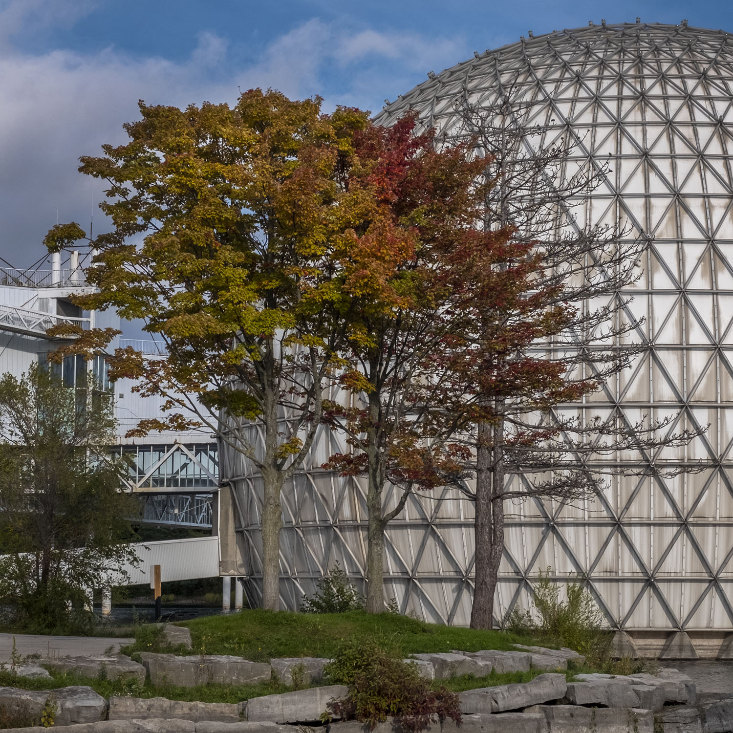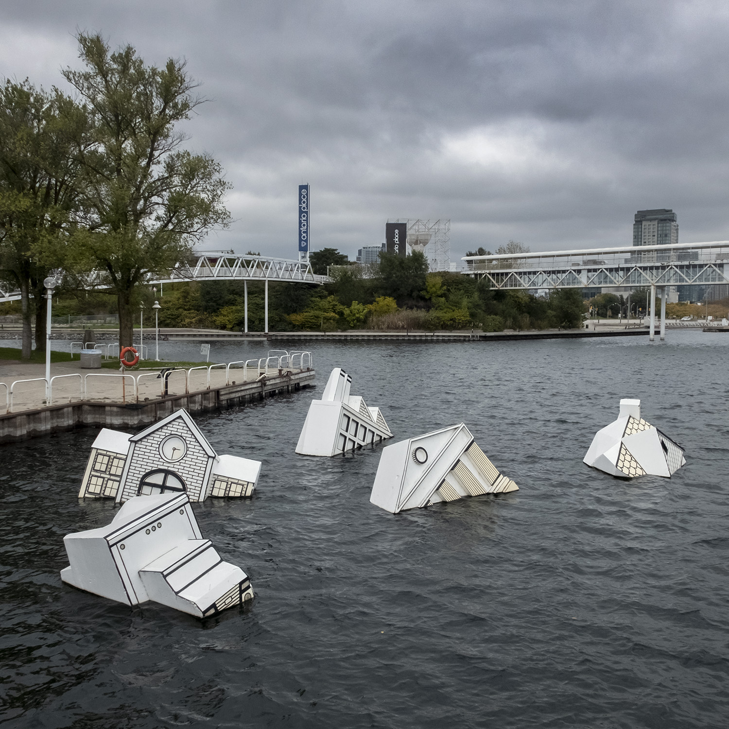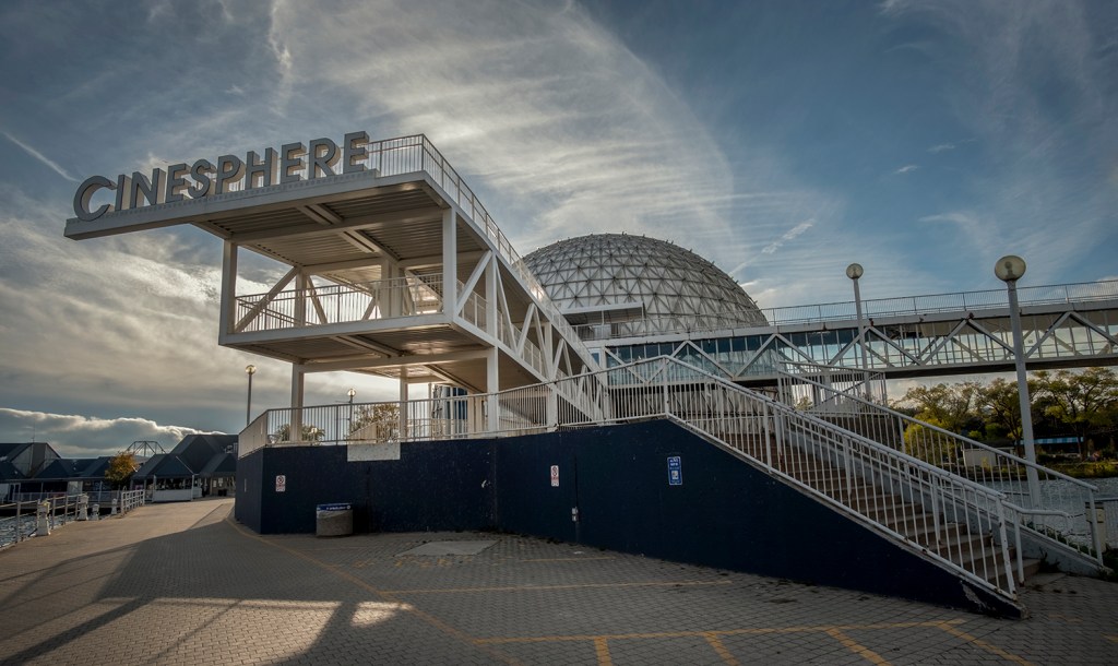 Crossing a bridge over Lake Shore Boulevard you arrive at Ontario Place, a public park built around islands made of landfill. Opened in 1971, it was the province’s response to the runaway success of Montreal’s Expo 67, and the futuristic architecture of that world’s fair was copied by architect Eb Ziedler, who designed the pavilion “pods” held up on piers over the water, joined by glass-walled walkways. They even copied the geodesic dome at Expo 67 (built as the American Pavilion) with the Cinesphere, a cinema built to showcase new IMAX technology. Today it’s an evocative example of retro-futurism – what the future looked like in the 1970s, like a set from Logan’s Run or Space 1999.