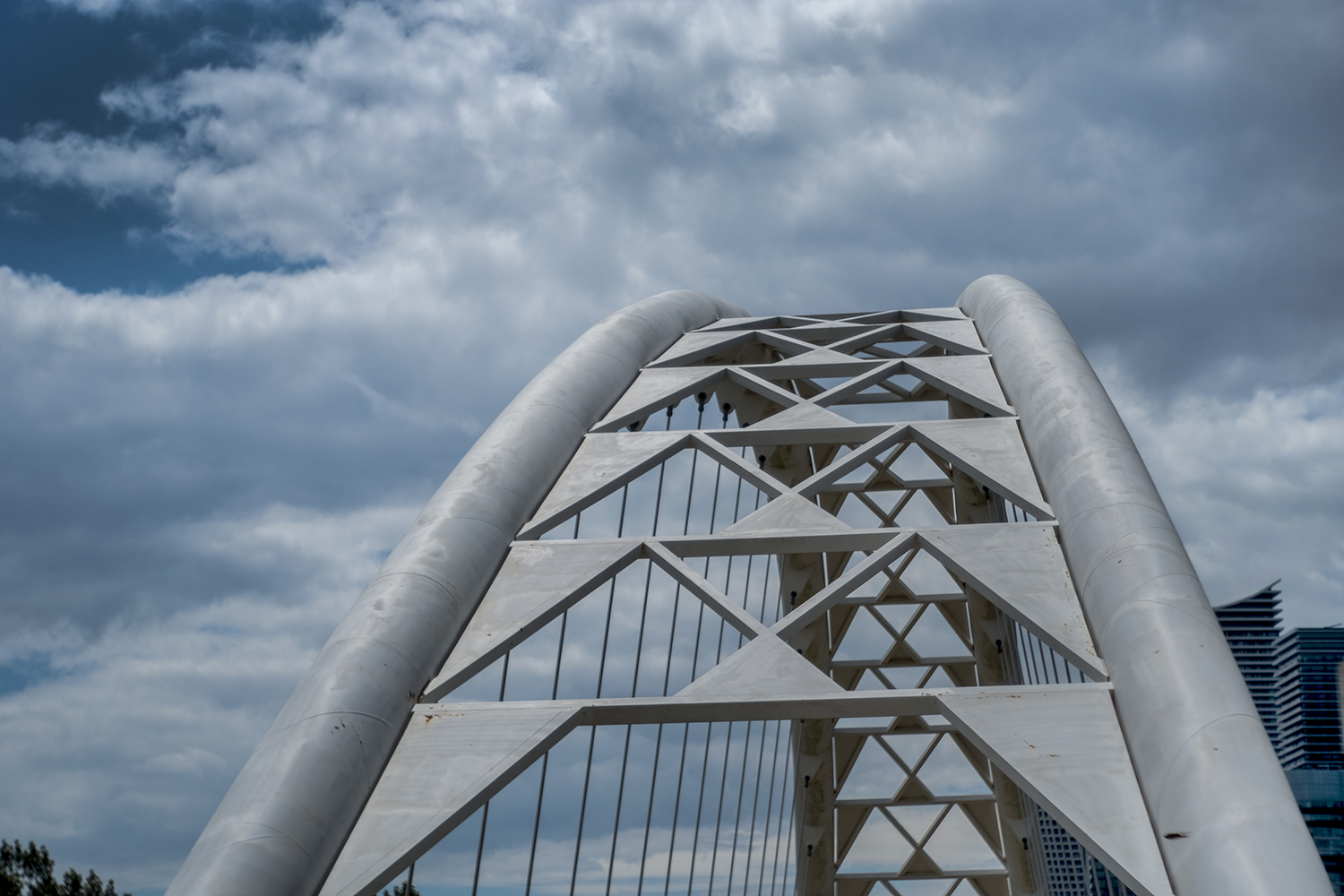 Gzowski Park ends by the mouth of the Humber River, where the boardwalk merges with the Martin Goodman Trail to cross the river over a distinctive bridge. We’ve been here on this blog before, at the end of a hike down the Humber from Bloor Street to the lake; the Humber Bay Arch Bridge was designed by Montgomery and Sisam Architects and opened in 1994, and was one of the city’s most photographed locations long before it became an Instagram staple. The bridge also marks the spot where the waterfront trail moves from Toronto to Etobicoke, a municipality that was incorporated into the city when it was amalgamated in 1998.