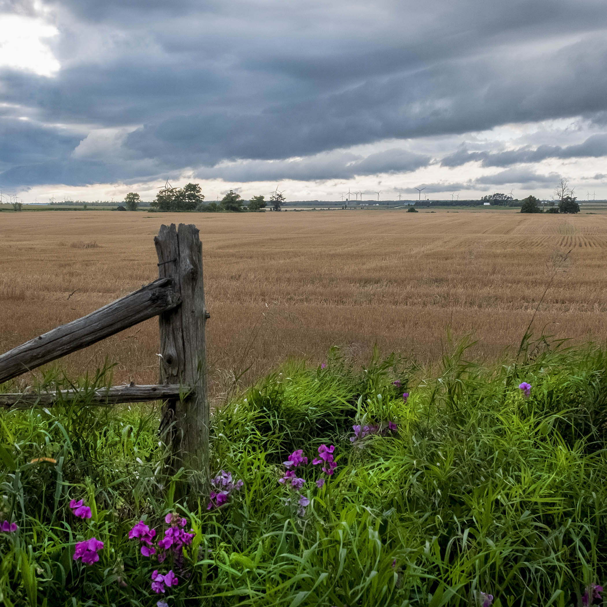 If you have time it’s worth driving along the roads of Bruce County to visit nearby towns like Paisley, Walkerton, Kincardine, Tiverton, Mildmay, Ripley, Wiarton and Tobermory. Each one is different, and the roads in between them are full of opportunities for shooting landscapes, with clear views over the fields of huge skies like this one, glimpsed on the evening of my last night in Bruce County.