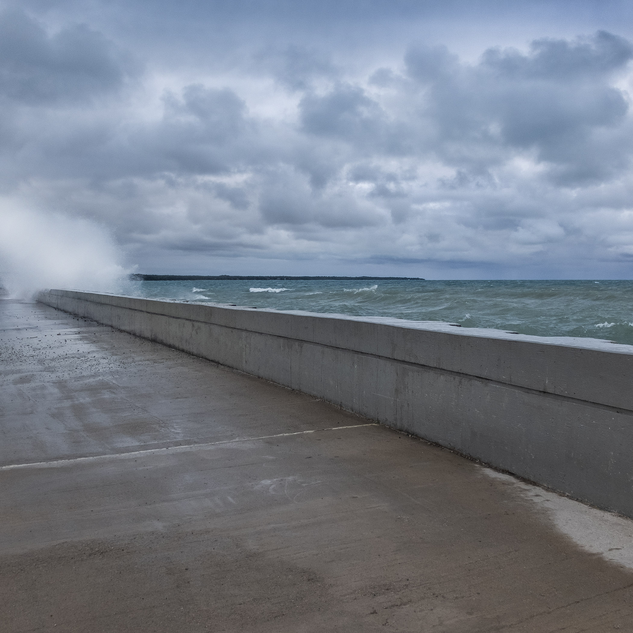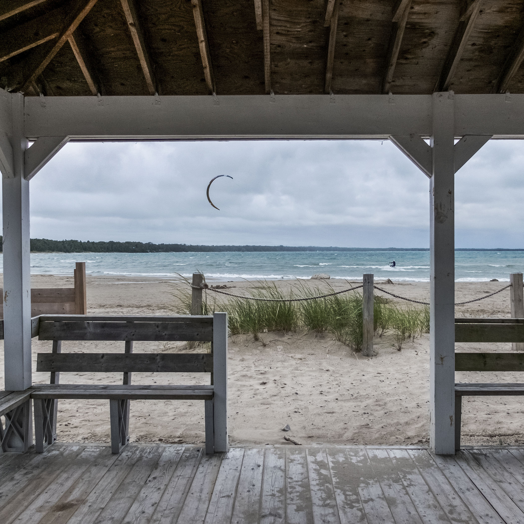 The weekend is blustery while I’m there, with waves cresting over the breakwater and kite surfers circling each other off the beach. The marina is full but I have the beach and the boardwalk mostly to myself just after sunrise. It’s a late summer weekend and the clouds are low and heavy – it won’t stay this way all weekend, but it makes for some dramatic photos.